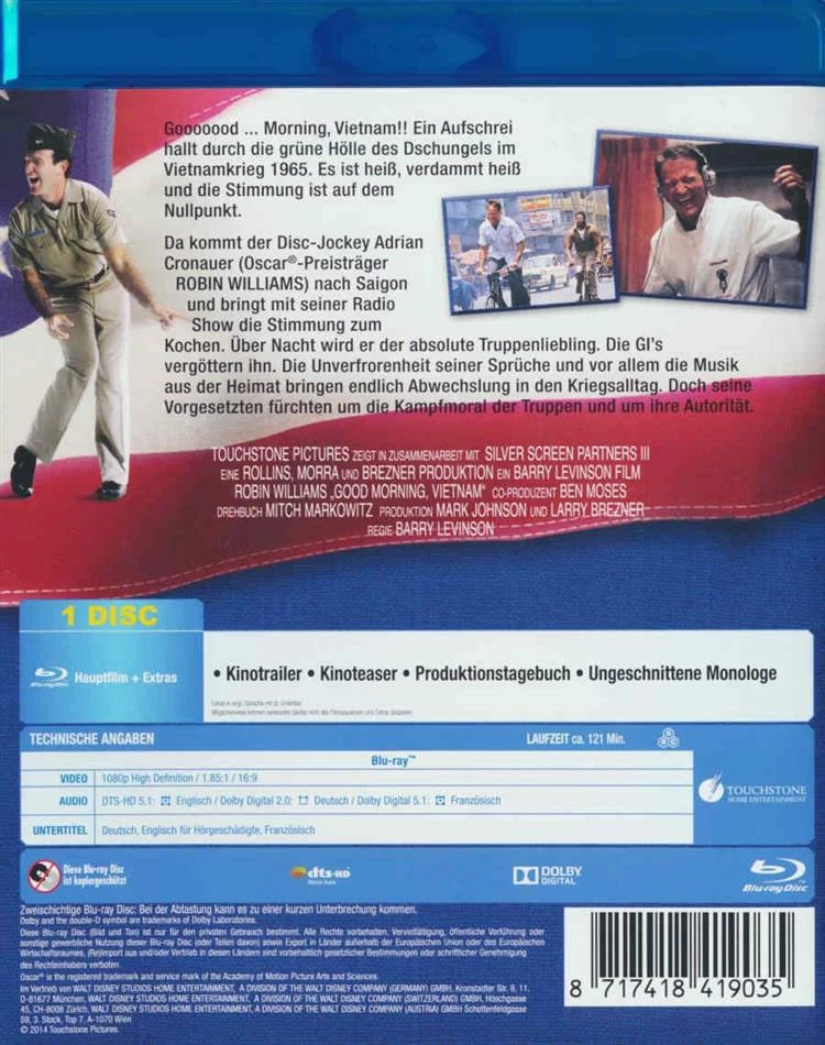 Vietnamkrieg 1965. US-Präsident Johnson nennt es einen ‘Polizeieinsatz’, aber in der grünen Hölle des Dschungels krepieren nicht nur die Ratten. Der Vietkong lauert hinter jeder Ecke und niemand weiss, wer Freund und wer Feind ist. Die Lage wird kritisch und die Moral ist gleich Null. Da kommt Disc-Jockey Adrian Cronauer! Mit seinem Radiosender macht er allen Feuer unterm Hintern – mit Musik, genauso heiss wie das Wetter – und das ist verdammt heiss! Über Nacht wird er der absolute Truppenliebling. Bis er sich in eine Vietnamesin verliebt… und auf einmal im wahrsten Sinne des Wortes ‘zwischen den Fronten’ steht!